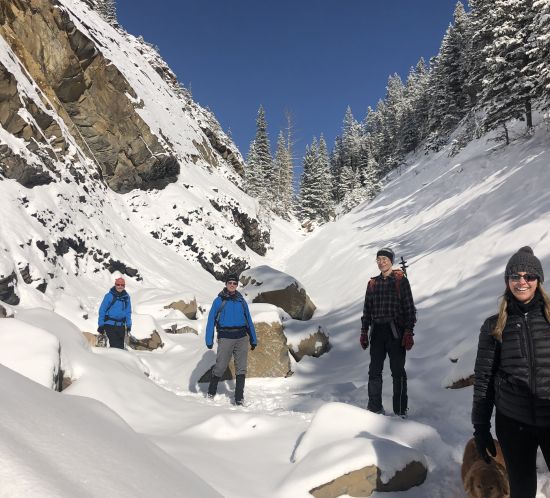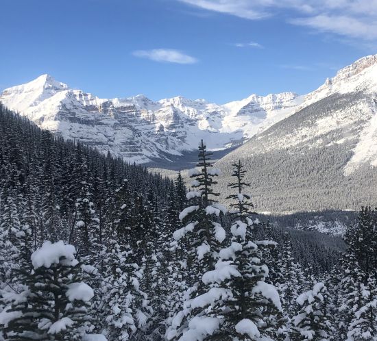 Arnica Lake is a challenging winter stroll due to the elevation gain including a km long climb out of the valley at the end, but the sweeping views are amazing.